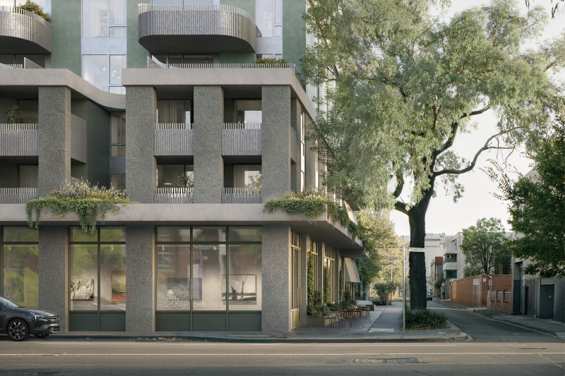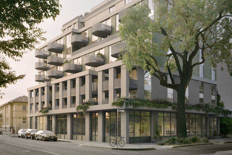 The Derby Street entrance provides a clear and welcoming arrival point. Bluestone references the heritage character of the public realm, while interior materials create a sense of warmth.