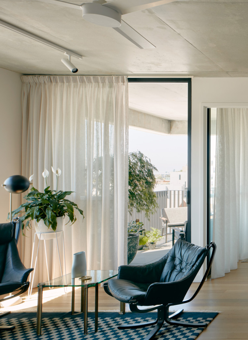 Relocating from her one bedroom Dight Street apartment, Lorri made the decision to upgrade her life and her view of the world —all the way up to the fifth floor, with framed views of the Dandenongs and the City; "It's like the sky becomes part of a living, moving artwork. I felt like I could spread my arms out here."