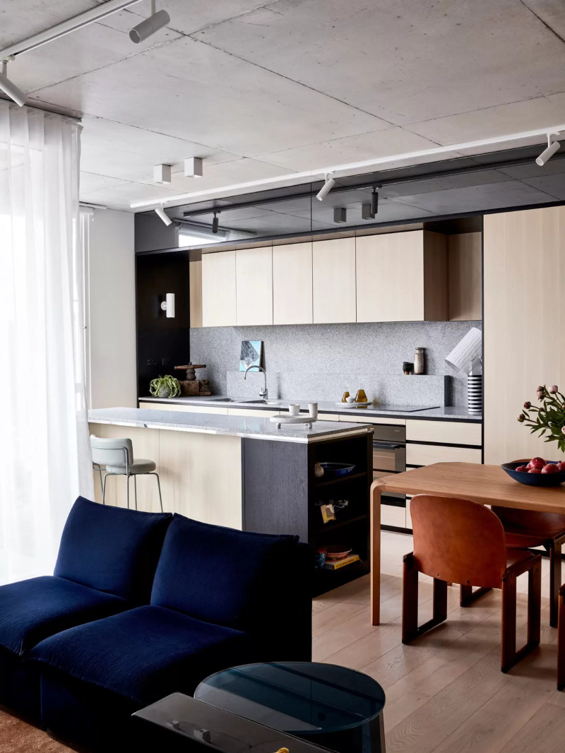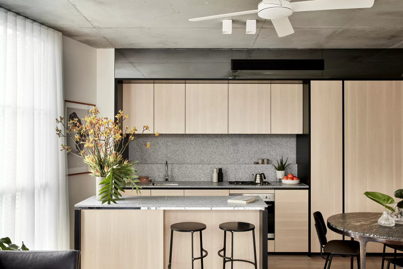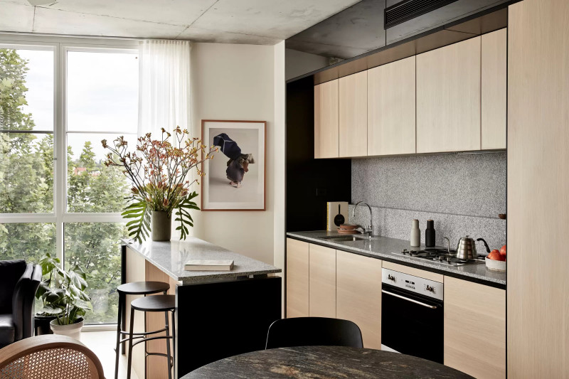 Offering comfort, flexibility and quality of life, the interiors were guided by a focus on clever storage and flexible layouts that are well suited to couples and families looking to stay close to Melbourne’s inner-city. A central staircase that connects the homes to a communal garden and ground-floor retail space underscores the project’s social focus.