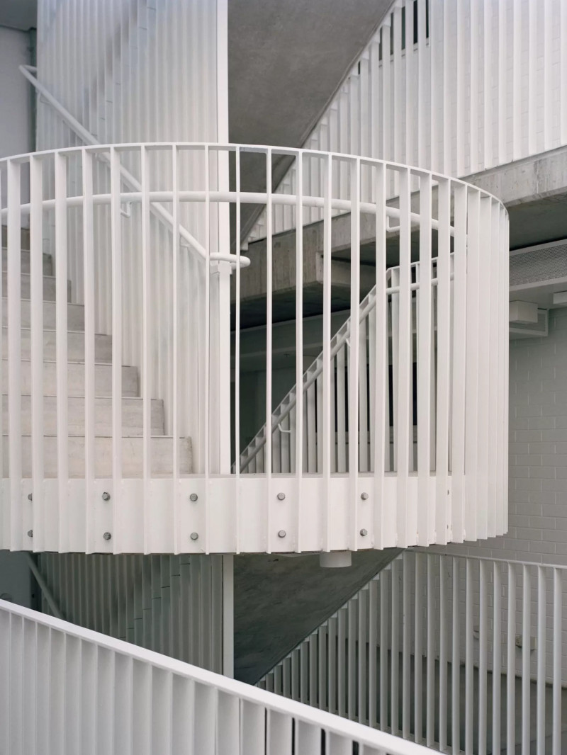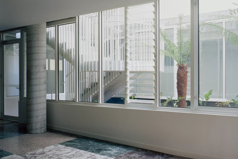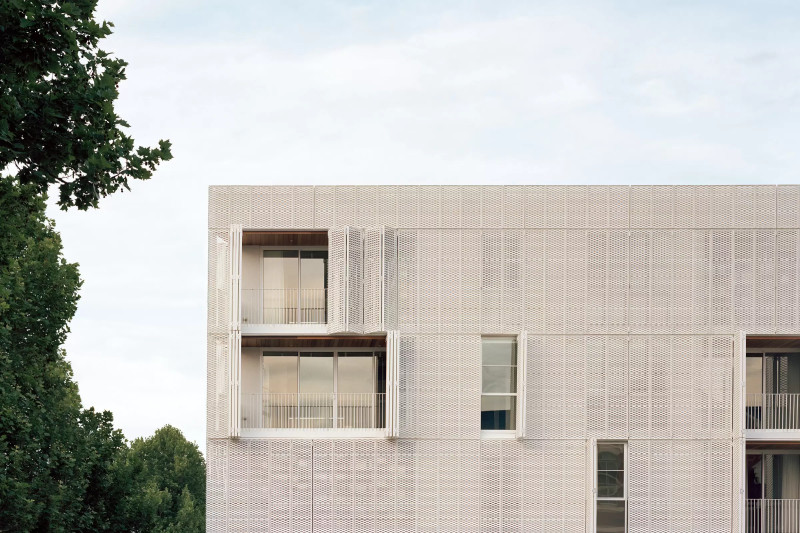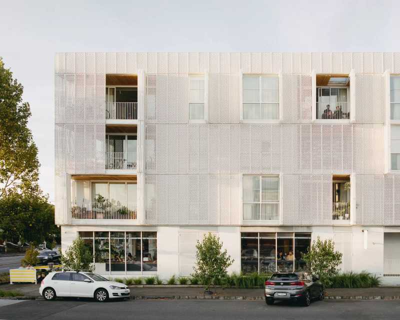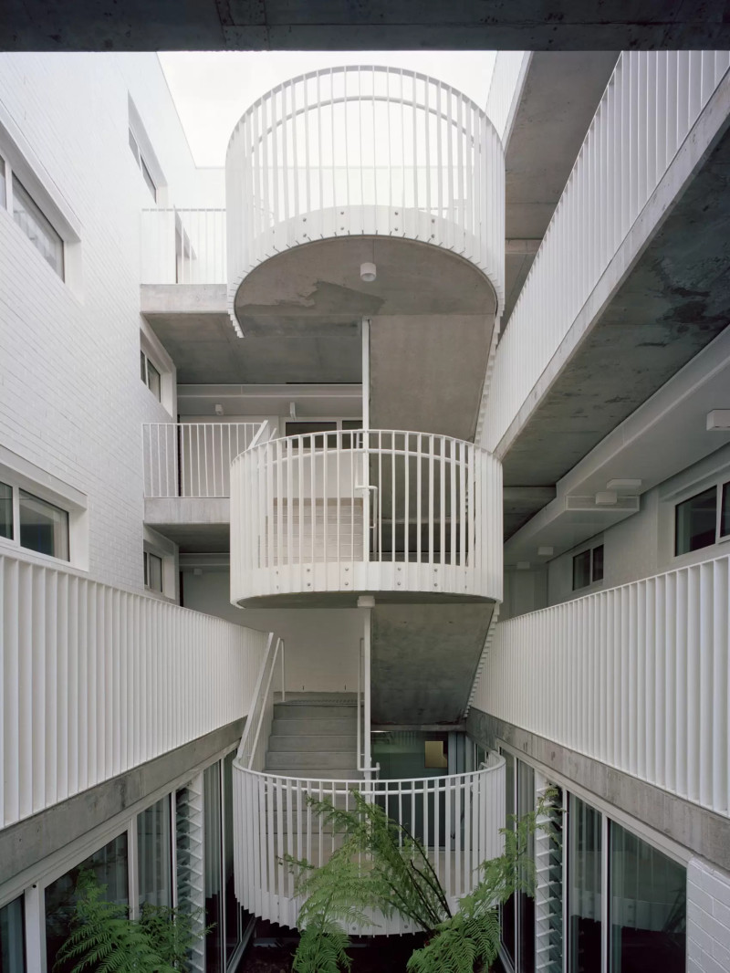 Designed to provide abundant air flow and natural light, the building is wrapped in a meshed ‘veil’ with operable shutters and screens. These elements can be adjusted for comfort and privacy throughout the day and across the seasons—a consideration of particular benefit for dwellings with a western facing. A central staircase connects homes to the communal garden and retail space on the ground floor.