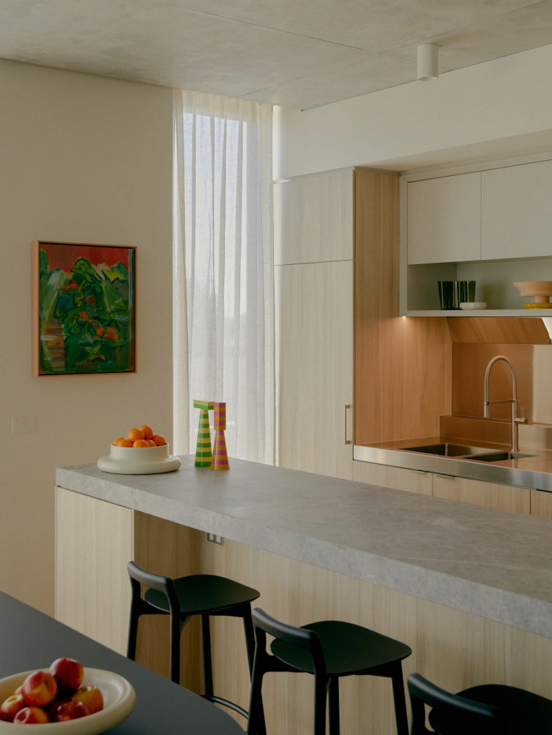 Brunswick East by Milieu is designed for hospitality. A collaboration with Fieldwork Architects and Foolscap Studio, the project encapsulates the warmth and charm synonymous with the area’s much-loved dining scene and cultural flair. The result is a collection of one, two and three bedroom apartments with distinctive interiors that blur the boundary between preparation and entertaining—spaces designed to enhance the experience of home and to complement the gesture of hosting.