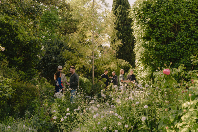 The project team explore the Rippon Lea Estate, from left to right; Kerry Phelan and Stephen Javens (K.P.D.O.), David Flack (Flack Studio), Mike McCormack (Milieu), Peter Miglis (Woods Bagot), Darren (Rippon Lea Estate) and Bob Earl (OCULUS)