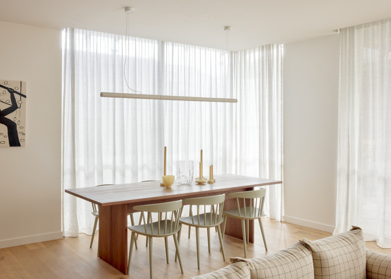 Custom-made lighting, designed by Brunswick East-based Volker Haug Studio, complements the material palette. Hand-picked by Georgina Jeffries, these pieces reflect the studio’s refined approach to design, which celebrates local craftspeople and prioritises lasting comfort.
