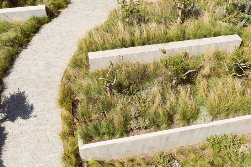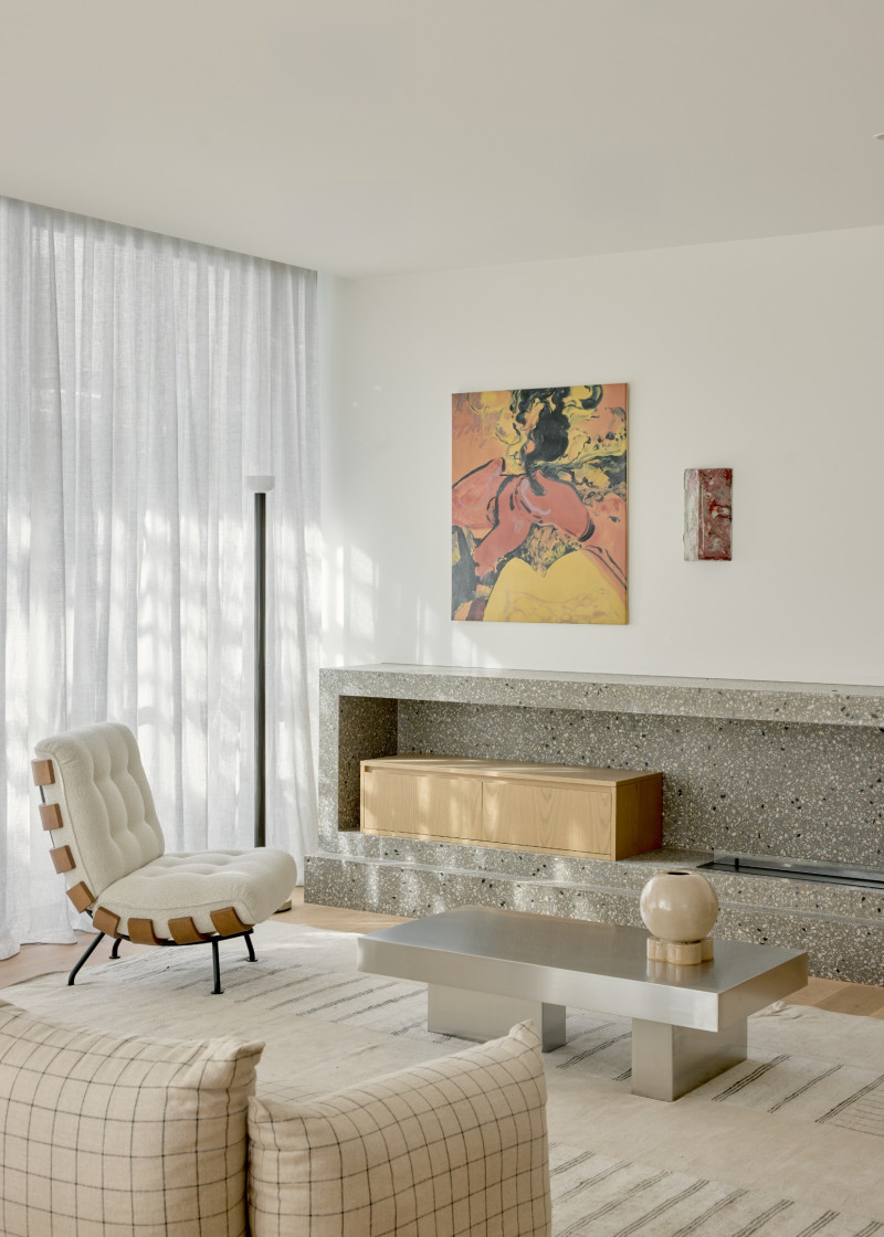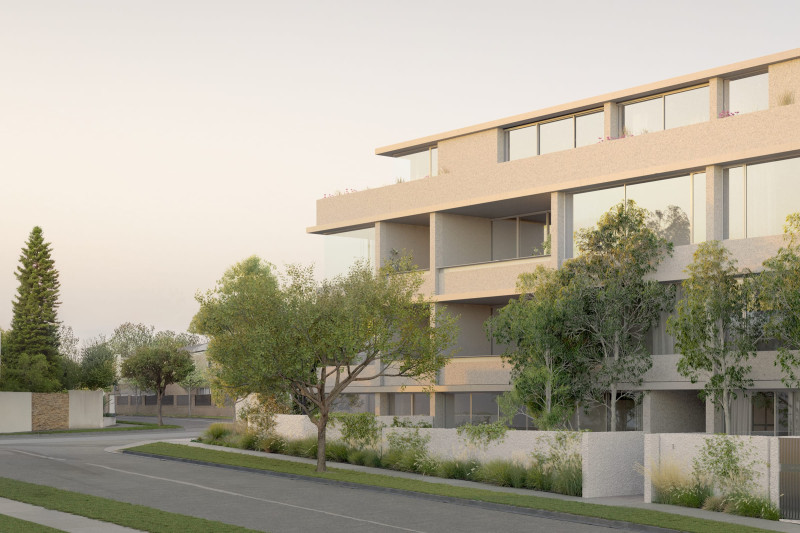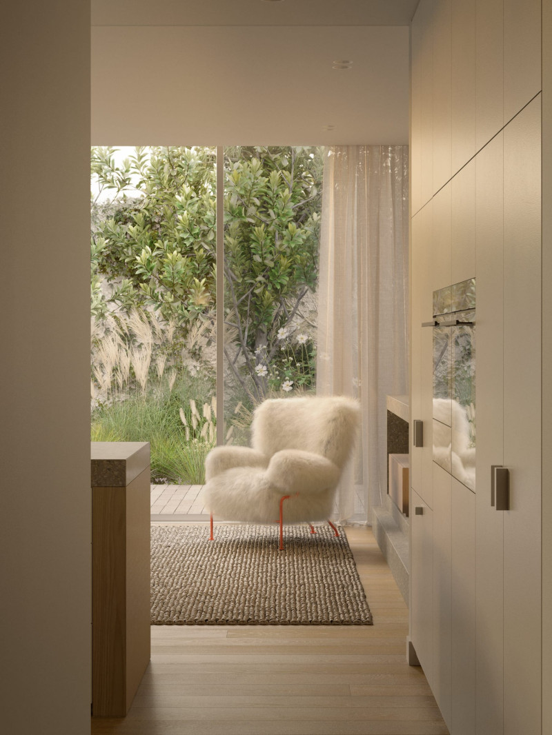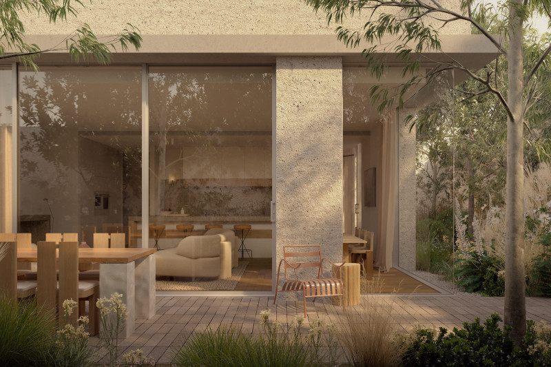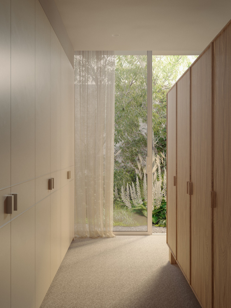 Intended to soften the built form and unite the architecture, interiors and outdoor areas, the landscaping features a dynamic mix of deciduous plants and trees that will shift across the seasons. These tactile and emotive outdoor areas are crafted by Acre, an award-winning multidisciplinary practice based in Collingwood.
