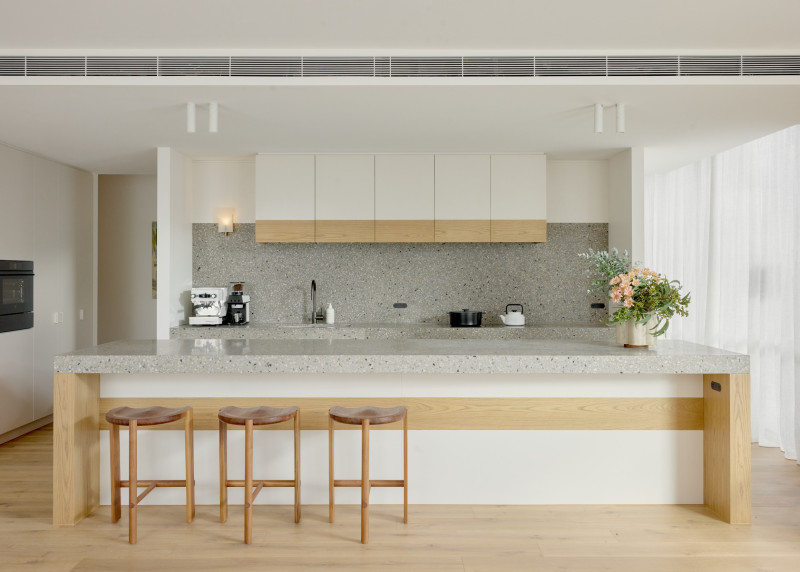 Designed by local studio Georgina Jeffries, these nurturing and light-filled spaces exemplify the curatorial approach the studio is known for. Elegant, tactile and highly functional, the material palette of honey timber joinery, brown ash brick, terrazzo and natural stone emanates warmth and welcome throughout.
