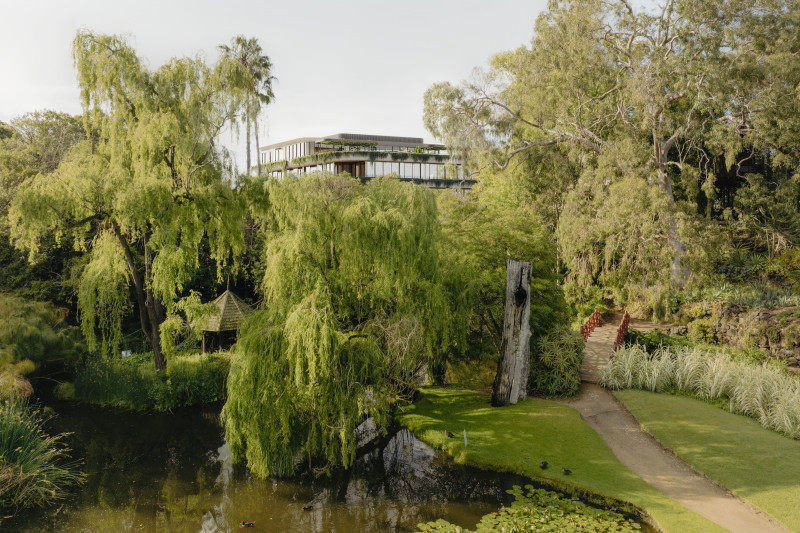 The architectural form of The Garden Pavilion centres on a series of elegant tiers that grant each level a full perimeter of cascading greenery. Across the years, this vegetation and flora will mature and thrive, softening the architecture and weaving the building into the fabric of the landscape. Designed by international architecture studio Woods Bagot, The Garden Pavilion will foster a strong and lasting sense of calm within its tranquil botanical setting.